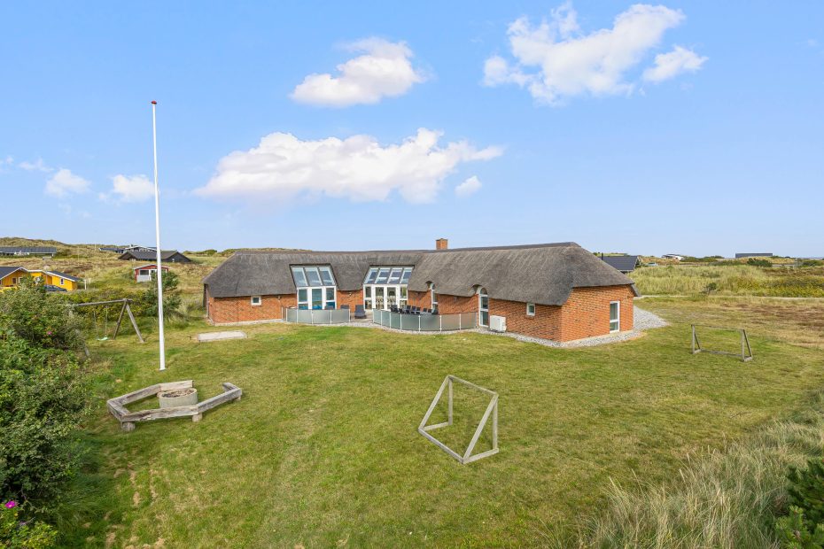Skodbjerge ist eine wunderschöne Gegend mitten auf Holmsland Klit – einer schmalen Landzunge zwischen Meer und dem Ringkøbing Fjord. Das reetgedeckte Haus passt perfekt in die schöne Natur und strahlt pure Ruhe und Entschleunigung aus.