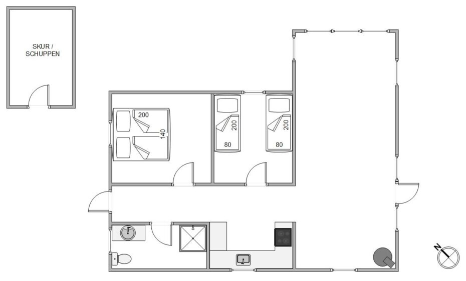 Auf der großzügigen, abgeschirmten und teils überdachten Terrasse lässt es sich bei einem Grillabend oder beim Sonnenbaden schön entspannen. Das Naturgrundstück bietet zudem einen Schuppen und sogar eine Außendusche könnt ihr hier finden. Die Außendusche steht von April bis November zur Verfügung. Mit nur 550 m Entfernung ist das Meer der dänischen Westküste ganz nah. Schließlich befindet ihr euch hier in der zweiten Reihe hinter den Dünen.