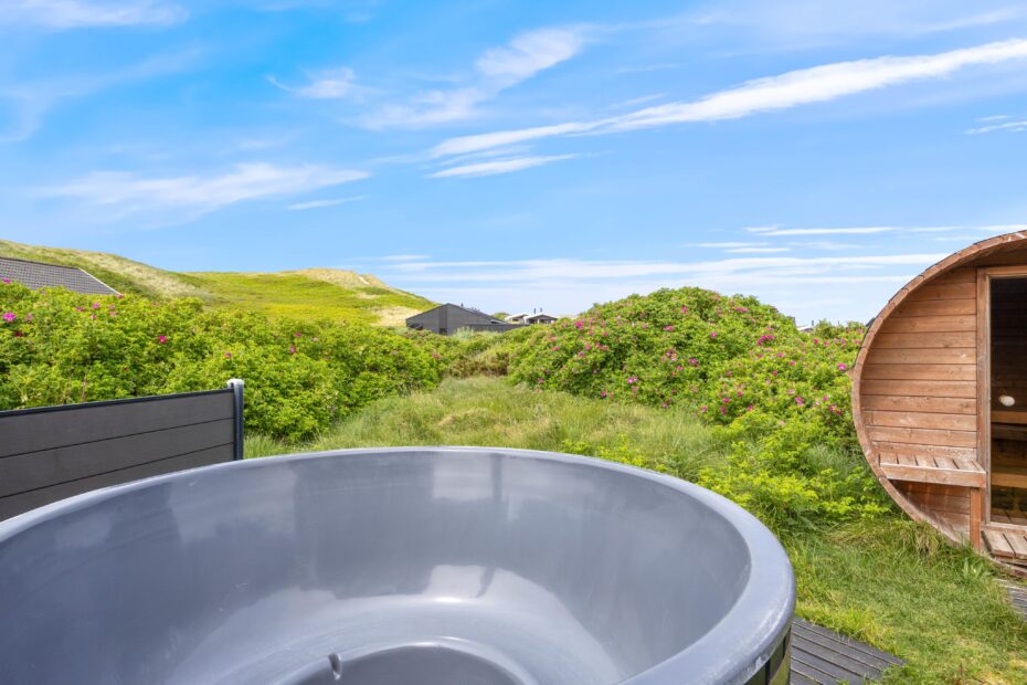 Auf dem großen Naturgrundstück ist ausreichend Platz für Ruhe und Entspannung nach einem schönen Tag am Strand. Unter der modernen Außendusche könnt ihr euch ganzjährig den Sand von den Beinen waschen oder besonders im Sommer eine erfrischende Dusche zwischendurch nehmen. In der Badetonne könnt ihr das Rauschen des Meeres und die frische Meeresluft genießen – mit Ausblick auf die Dünen. Bevor es zur Nachtruhe geht, könnt ihr den Abend in der Außensauna abschließen.
