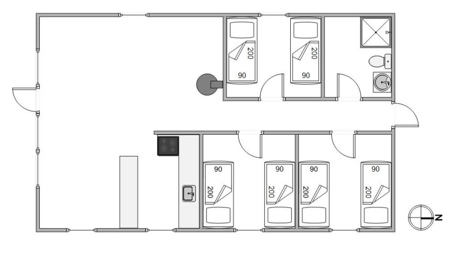 Praktische Helfer in Form von Geschirrspüler, Mikrowelle und einem Kühlschrank mit Gefrierfach lassen das Kochen zum Spiel werden, während der Kamin mit seiner wohligen Wärme und dem Knistern für die Gemütlichkeit sorgt, insbesondere zu einem gemeinsamen Filmabend an einem dunklen Herbstabend. Das Ferienhaus verfügt über dänische Fernsehkanäle.