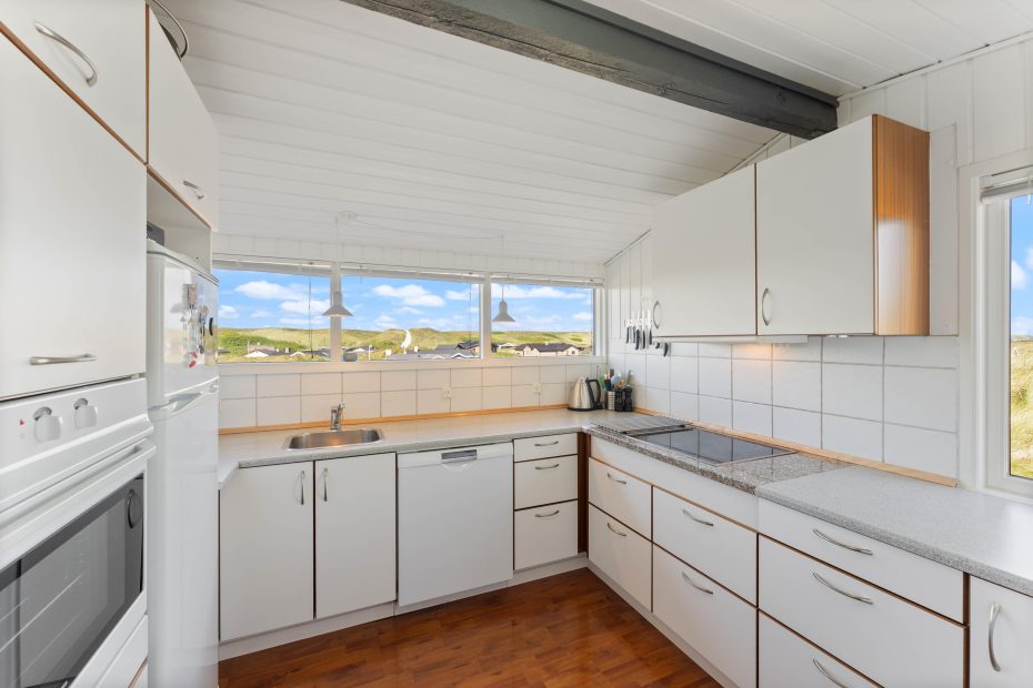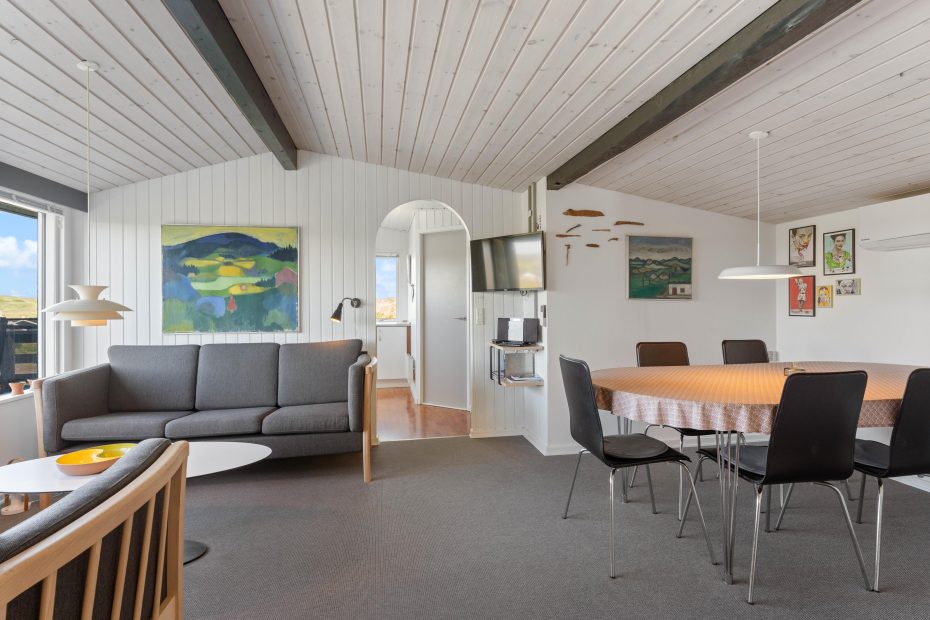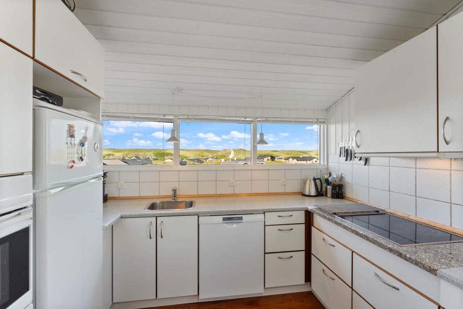 n diesem Ferienhaus wird man sich wie zu Haus fühlen. Die grossen Fenster im Wohnraum sorgen für viel Licht aber auch eine fantastisch Aussicht Richtung der Nordsee, die ihr von der Couch gut geniessen könnt. Wenn es dann mal dunkel wird, könnt ihr einen schönen Film über dem Chromcast streamen oder eine kleine Speile Abend am Esstisch machen. Die Küche ist gut ausgestattet, damit ihr hier Leckereien zaubern könnt und eueren Magen mit dänischen Spezialitäten verwöhnen könnt. Ihr könnt euch in den Zwei Schlafzimmer verteilen, das eine ist mit Doppeltbett für Mama und Papa und in dem anderen sind 2 Einzelbetten. Klein aber fein, mit seinen 59m² hat dieses Ferienhaus ein Badezimmer mit Bodenheizung und auch ein extra gelegenes WC.