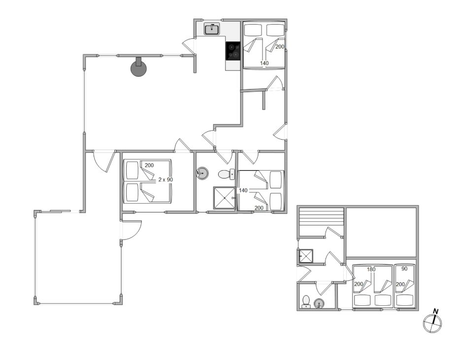 Das Ferienhaus verfügt über einige coole Highlights, die den Urlaub außergewöhnlich machen. Im Wohnzimmer befindet sich der klassische Holzofen, und an einem Ende des Hauses befindet sich ein schönes Wohnzimmer, das mit seinem großen Fenstern das geniessen der schönen westjütländischen Natur einlädt. Alle Schlafzimmer verfügen über Kleiderschränke. 3 der Schlafzimmer befinden sich im Haupthaus, ein zusätzliches Schlafzimmer, Dusche, WC und Sauna gibt es in dem schönen Nebengebäude. Dieses Haus ist ideal für Familien, auch wenn Oma und Opa gerne mitreisen wollen.