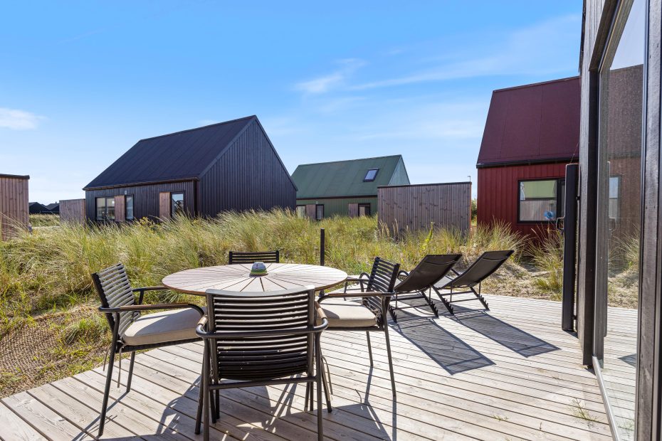An zwei Seiten des Ferienhauses findet ihr eine teils abgeschirmte Holzterrasse mit gemütlichen Terrassenmöbeln. Hier könnt ihr auf den Sonnenliegen entspannen und ein Buch lesen oder einen gemeinsamen Grillabend veranstalten. Bei einem Glas Wein könnt ihr den Tag ausklingen lassen und den Sonnenuntergang auf der Nordseeseite beobachten.