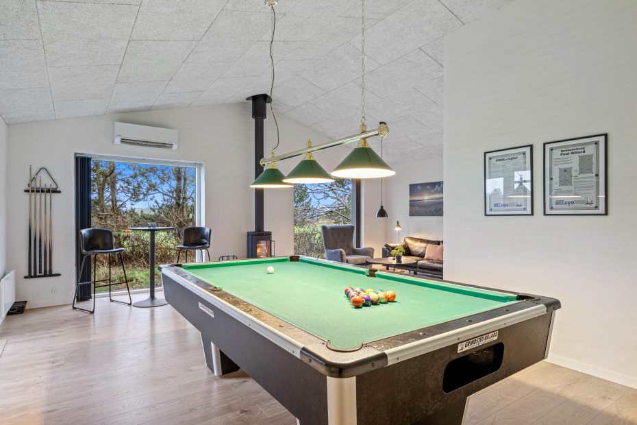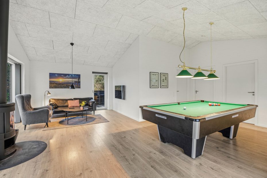 Die große und moderne Küche mit integriertem Essbereich lädt zum gemeinsamen Kochen ein und lässt keine Wünsche offen – anschließende Spieleabende sollten hier keine Seltenheit sein. Im angrenzenden Aktivitätsraum, der unter anderem mit einem Poolbillardtisch ausgestattet ist, kommt bestimmt keine Langeweile auf. An kühleren Abenden könnt ihr die wohlige Wärme vom Kamin genießen und es euch auf der Couch mit einem guten Buch