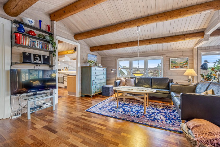 Schönes und gut eingerichtetes Ferienhaus in guter und ruhiger Lage auf einem hügeligen Grundstück. Das Haus ist von Terrassen umgeben, eine davon ist teilweise überdacht und von hier hast du eine tolle Aussicht nach Süden. Hier findest du alles für einen erholsamen Urlaub vor.