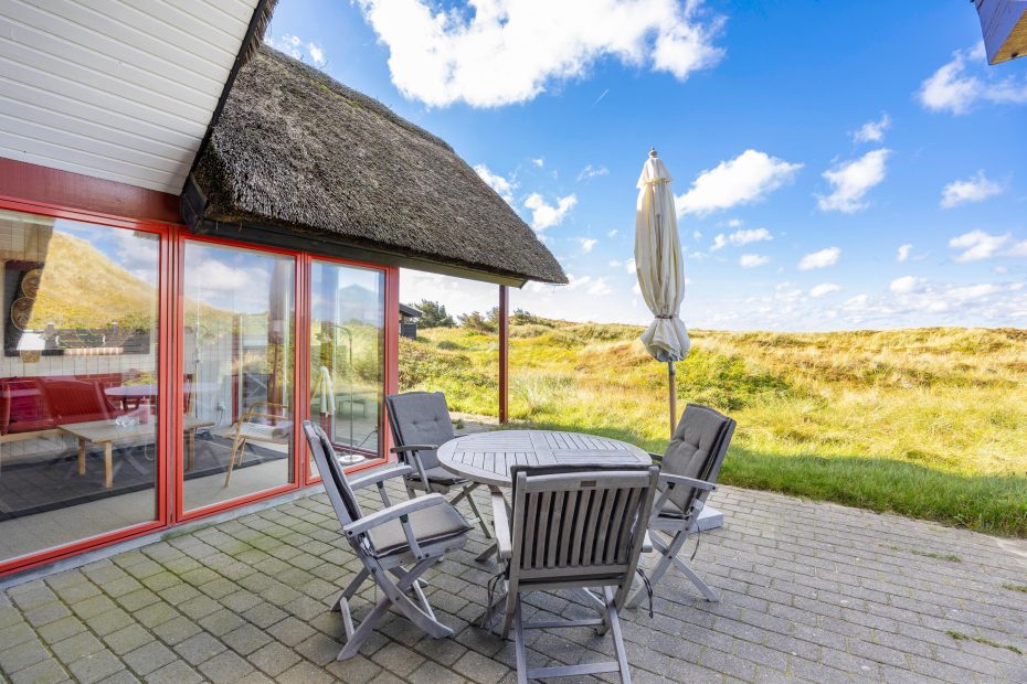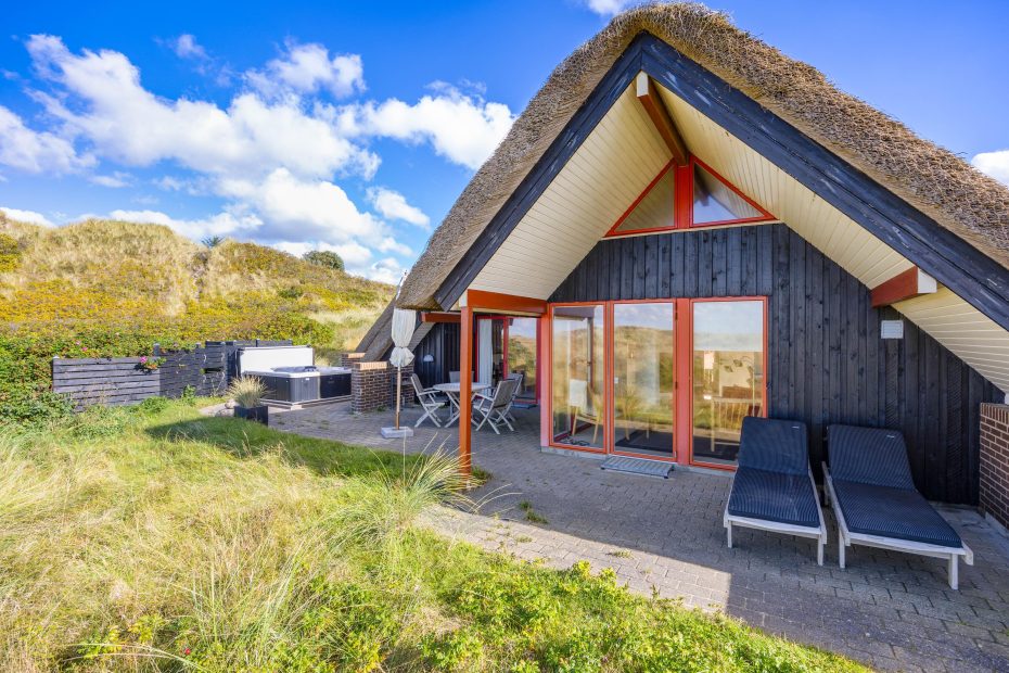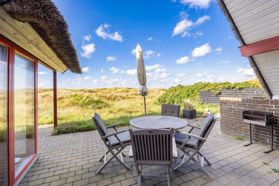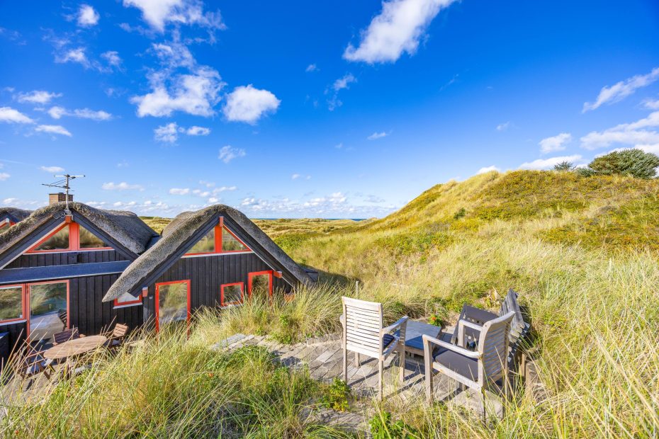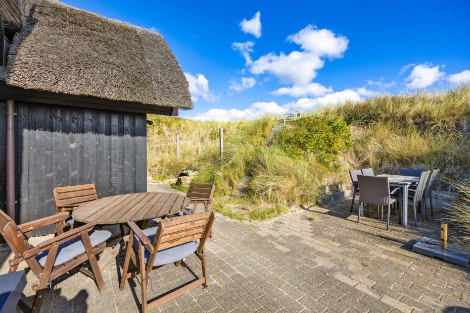 Reetgedecktes Ferienhaus mit persönlicher Einrichtung. Das Haus liegt direkt an den Dünen und nah an der Nordsee, welches es einfach macht zum Strand zu gelangen. Von der Terrasse hast du einen tollen Blick auf die Dünen, hier kann man die langen Sommerabende genießen.