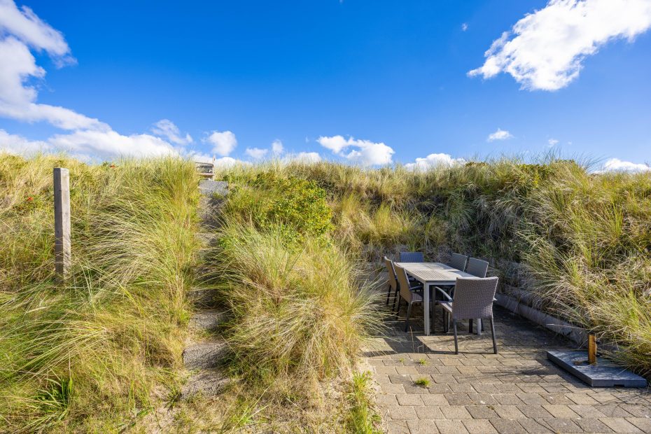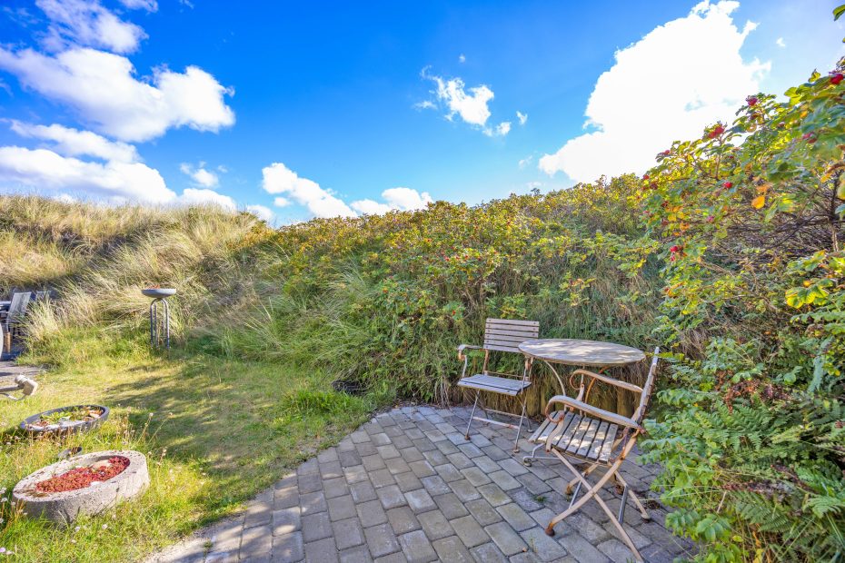 An den lauen Sommerabenden kannst du z.B. den Grill auf der Terrasse anmachen. Mit den Dünen im Hintergrund kannst du den Kindern beim spielen zuschauen, während du ein Glas Wein genießt. Rund ums Haus gibt es mehrere windgeschützte Ecken, wo man gut verweilen kann.