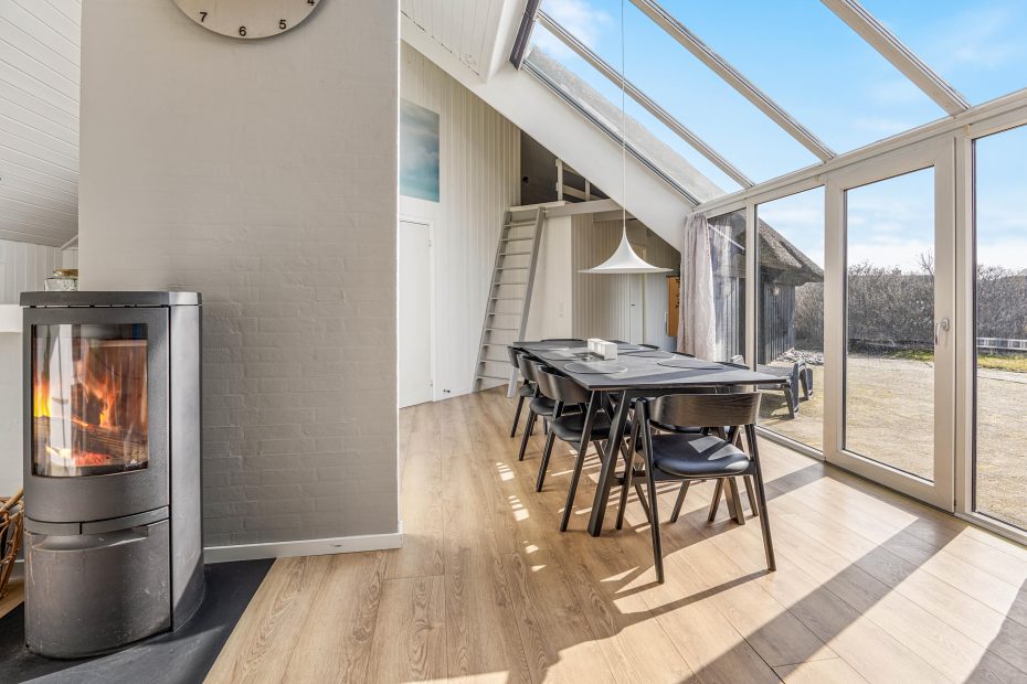 Im Ferienhaus erwartet euch eine gemütliche Einrichtung mit bequemen Möbeln, in denen ihr euch in eurem Urlaub wohlfühlen könnt. Wie es sich für ein echtes Ferienhaus gehört, gibt es im Wohnzimmer einen Holzofen, der die Urlaubsatmosphäre vervollständigt und schöne Wärme im Ferienhaus verbreitet.