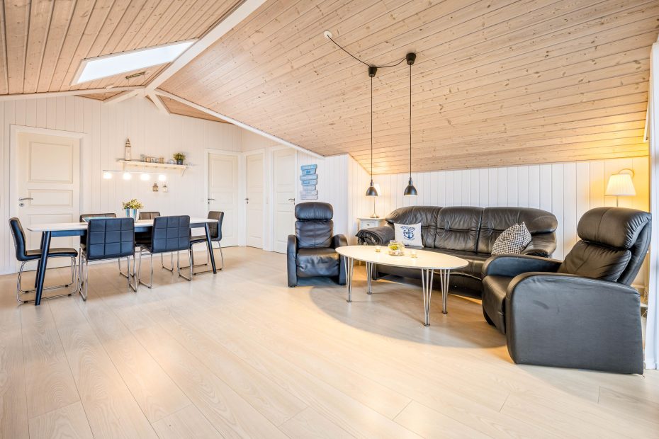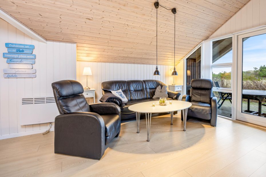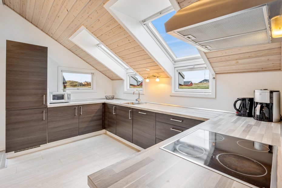 Die in den Raum integrierte Küche bietet viel Stauraum, mit Geschirrspüler und 80 Liter Gefrierschrank sowie einer Mikrowelle auch einen guten Komfort. Hier könnt ihr alle gemeinsam werkeln und eure Gaumen mit leckeren, landestypischen Spezialitäten erfreuen. Frischen Fisch erhaltet ihr zum Beispiel in der Hafenstadt Hvide Sande.