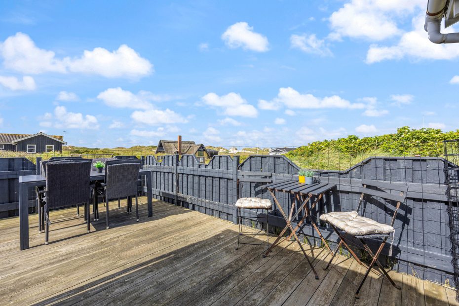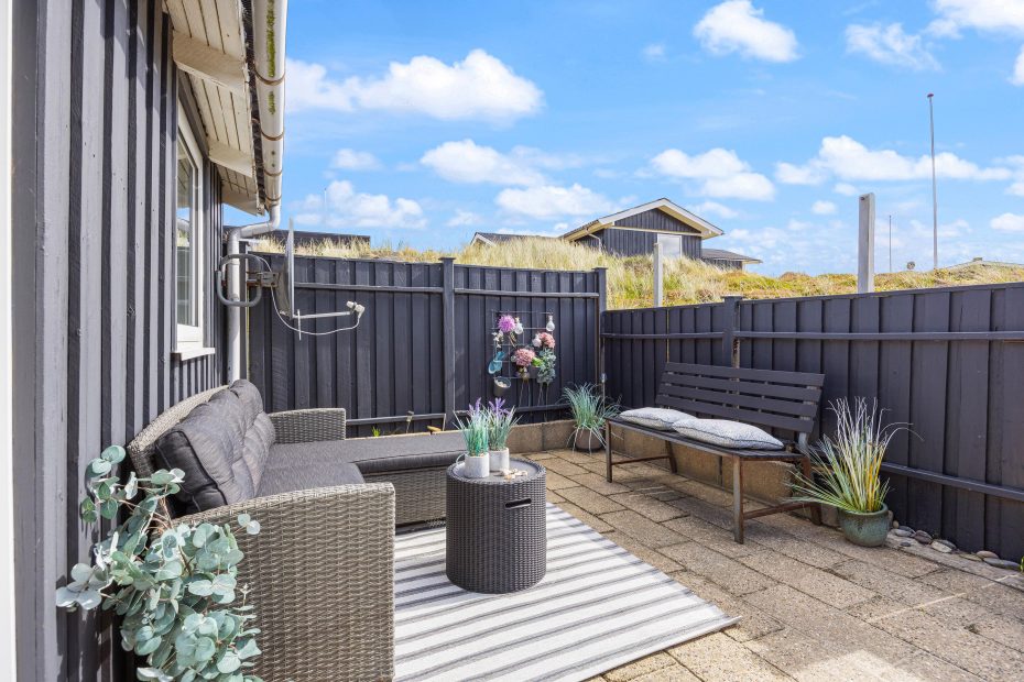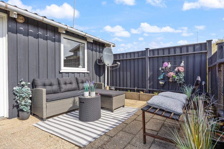 Die abgeschirmte und geschlossene Terrasse ist ideal für gemütliche Grillabende und zum Entspannen im Garten. Es sind auch Gartenmöbel vorhanden, sodass ihr die hellen Sommerabende in vollen Zügen genießen können. Die Sonnenliegen laden an warmen, sonnigen Tagen zu einem Sonnenbad ein. Das Ferienhaus befindet sich auf einem Naturgrundstück in den Dünen, was für eine hyggelige Urlaubsatmosphäre sorgt. Das 1200 Quadratmeter große Grundstück bietet viel Platz für Aktivitäten im Freien und zum Spielen.