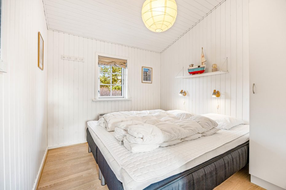 Die Schlafgelegenheiten des Ferienhauses im Hjelmevej 23 sind ebenfalls hell und freundlich eingerichtet. Ein Schlafzimmer verfügt über ein Doppelbett und die anderen beiden über insgesamt 3 Einzelbetten. Im Badezimmer wurde eine Fußbodenheizung verlegt, damit ihr keine kalten Füße bekommt.