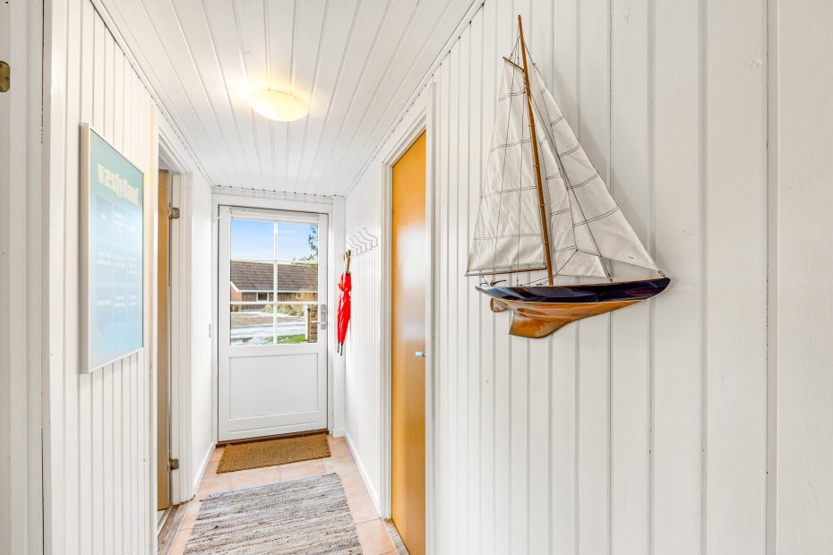 Die hellen Holzdecken und Wände bringen den typischen Ferienhauscharakter zum Vorschein. Der Holzofen spendet wohlige Wärme und gibt euch das Gefühl von einem klassischen Ferienhausurlaub in Dänemark. Lehnt euch im Sessel zurück, lauscht dem Knistern des Feuers vom Kamin und genießt dabei die Aussicht auf euer Grundstück.