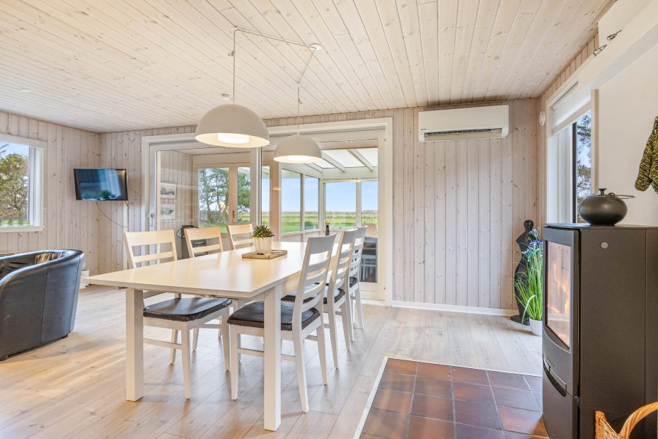 Das Ferienhaus auf Fyrrekrat 6 ist gemütlich, sowie liebevoll und praktisch ausgestattet. Im offenen Wohn- und Essbereich befindet sich auch die integrierte Küche, welche über einen Geschirrspüler verfügt. Eine moderne und energiesparende Wärmepumpe sorgt im Haus für die gewünschte Wohlfühltemperatur.