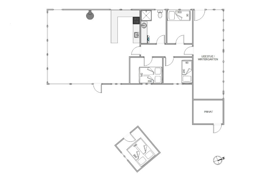 Der Eingang zum Ferienhaus ist gleichzeitig ein schöner Wintergarten, in dem ihr das ganze Jahr über die Umgebung genießen könnt. Eine energiefreundliche Wärmepumpe sorgt dafür, dass ihr immer ein angenehmes Raumklima habt, und mit all den alltäglichen Helfern sowie einer schnellen und stabilen Internetverbindung wird euch in eurem Urlaub an nichts fehlen.