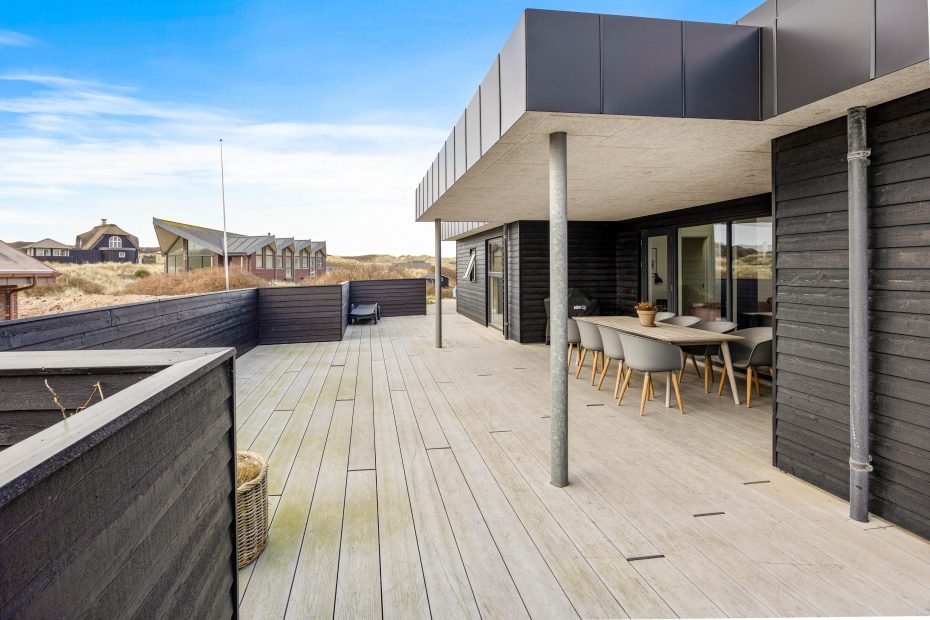 Des Weiteren verfügt das Ferienhaus über eine große Terrasse, die teilweise eingezäunt ist und so vor dem schlimmsten Wind schützt. Die Terrasse ist auch teilweise überdacht, wenn ihr euch vor der Sonne schützen möchtet. So habet ihr viel Platz auf der großen Terrasse. Natürlich verfügt das Ferienhaus über verschiedene Gartenmöbel, Sonnenliegen und einen Grill, der ideal für die Sommerabende ist.