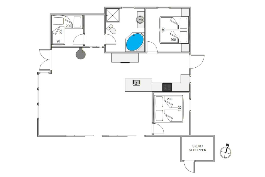 Im Ferienhaus gibt es viel Platz für alle Familienmitglieder. Ihr findet hier insgesamt 3 Schlafzimmer, von denen 2 mit einem Doppelbett ausgestattet sind, während das letzte Schlafzimmer mit einem Etagenbett versehen ist.