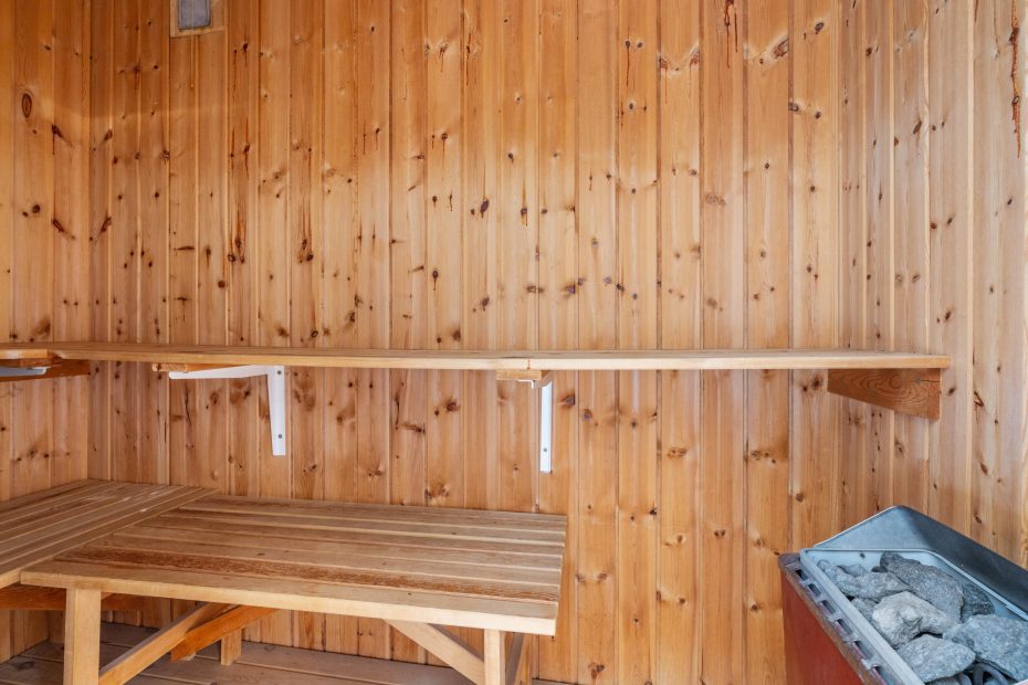 Gemütliche, helle Innengestaltung mit Sauna und Whirlpool
