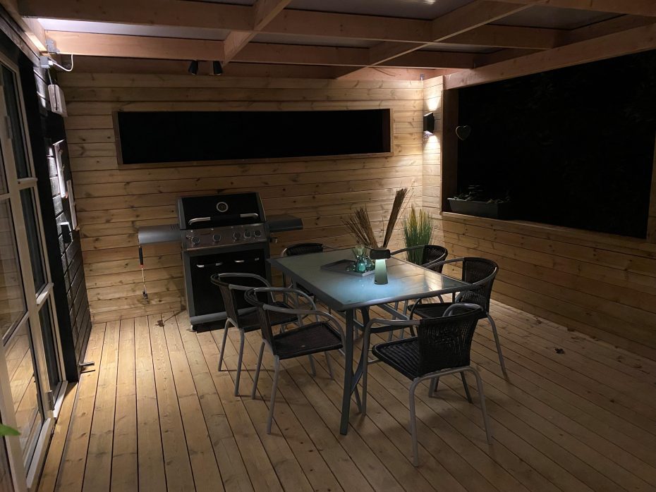 Die ca.55 qm2 grosse Terrasse ist eingezäunt, sodass ihr euch in aller Ruhe sonnen könnt und eure Hunde sich selbst und ohne Leine ein schattiges Plätzchen suchen können. 22 qm2 Terrasse wurden überdacht und mit einem Fenster versehen, sodass ihr auch bei wechselhaftem Wetter draussen sitzen und es euch gut gehen lassen könnt. Für euren vierbeinigen Familienmitglieder wurde sogar eine Hundebar eingerichtet. Einen warmen Sommertag könnt ihr mit einem gemütlichen Grillabend ausklingen lassen.