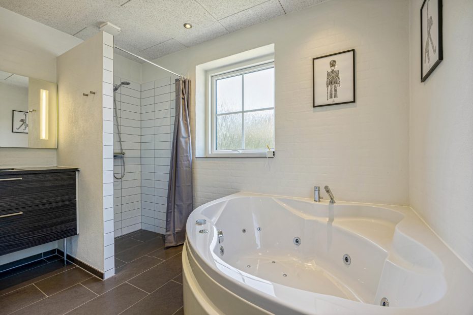 Es gibt 3 Schlafzimmer, die jeweils mit 2 Doppelbetten und 2 Einzelbetten ausgestattet sind. Ein Teil des Dachbodens wurde zu einem kleinen Spielzimmer ausgebaut, in dem es eine Playstation gibt. Beide Badezimmer sind voll ausgestattet, wobei es im großen Badezimmer auch einen Whirlpool gibt. In dem Whirlpool ist Platz für 2 Personen, entspannt euch, lasst die Sorgen des Alltags hinter euch und genießt die Zeit zu Zweit. Zur weiteren Ausstattung gehören eines Waschmaschicne und ein Trockner, welche immer für frische Wäsche sorgen.