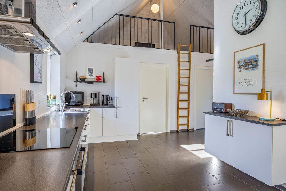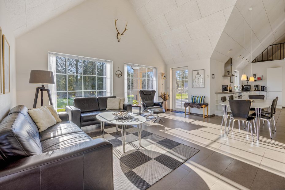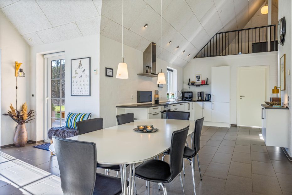 Der Wohnbereich ist großzügig und vereint das Wohnzimmer mit dem Essbereich und der Küche. Die Küche ist sehr gut ausgestattet und hält unter anderem einen 70 Liter Gefrierschrank und einen Geschirrspüler für euch bereit. Das Wohnzimmer ist geschmackvoll eingerichtet und optimal dafür geeignet den Urlaubstag vor dem Kamin oder bei einem Film ausklingen zu lassen. Auf dem Fernseher könnt ihr deutsche Fernsehprogramme schauen oder euch ein gutes Buch zur Hand nehmen und dabei dem Knistern des Feuers im Kamin lauschen, denn Entspannung steht in diesem Ferienhaus an erster Stelle.