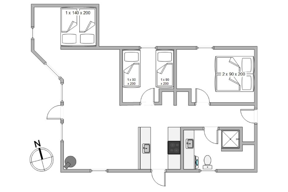 Es gibt 2 Schlafzimmer im Ferienhaus, welche jeweils mit einem Doppelbett und mit 2 Einzelbetten ausgestattet sind. Im Badezimmer gibt es eine Fußbodenheizung, die eure Füße warmhält, wenn ihr aus dem Bett kommt und eine Waschmaschine.