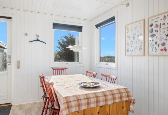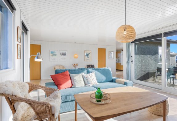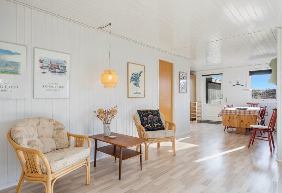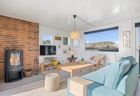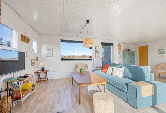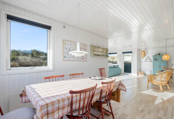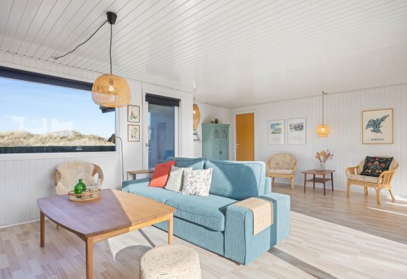 Solides Wohnen mit zeitgemäßer Ausstattung inklusive kabellosem Internet und Fernsehen bietet euch dieses in den Dünen von Houvig gelegene lichtdurchflutete Ferienhaus am Ende von Regnspovedalen.