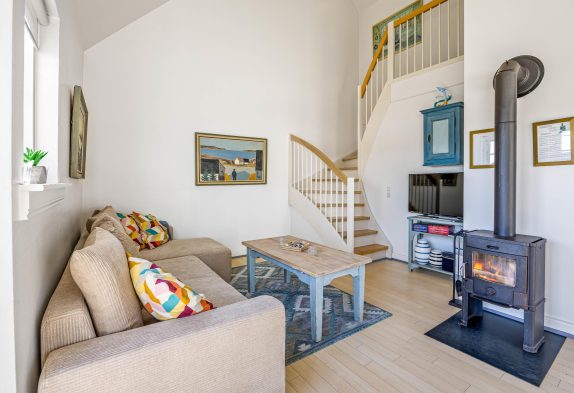Die Ferienwohnung ist Teil eines Mehrfamilienhauses mit insgesamt 4 Wohnungen. Jede Wohnung hat jeweils einen eigenen Eingang, sowie eine geschlossene Terrasse.Im Erdgeschoss dieser Ferienwohnung befindet sich ein offener Wohn- und Essbereich, der mit einer Essecke und einer gemütlichen Sofaecke eingerichtet ist. Hier könnt ihr das Zusammensein genießen, während die Flammen des Holzofens im Hintergrund lodern.