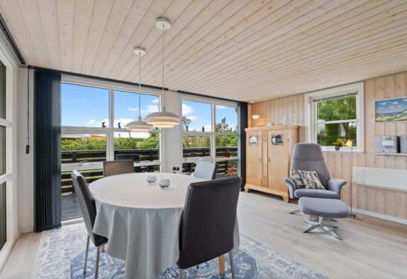 Auf Nordsøvej 147 findet ihr dieses gemütliche Ferienhaus in Söndervig, welches nur auf euch wartet! Das Holzhaus liegt direkt im Herzen des schönen Feriengebiets am Ringkøbing Fjord und damit auch nicht weit vom schönen Sandstrand und dem belebten Zentrum entfernt. Das kleine, hyggelige Sommerhaus ist für bis zu 4 Personen ausgestattet und auch euer Familienhund ist hier auf insgesamt 75 m2 Wohnfläche willkommen. Für Hundebesitzer ist die geschlossene Terrasse ganz klar ein Bonus. Ein Kaminofen, eine moderne Wärmepumpe, freies Wlan sowie die gute, zentrale Lage machen dieses Ferienhaus zu einer Option für euren kommenden Urlaub.