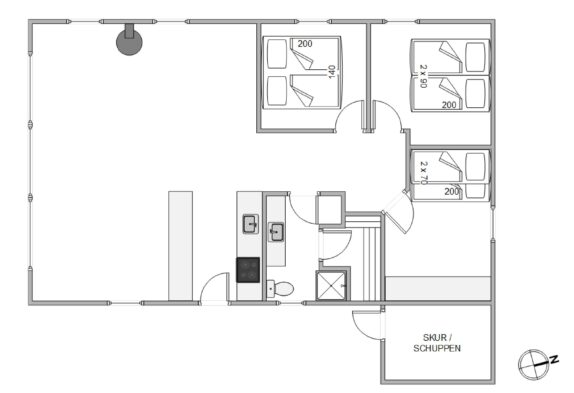 Auf einem schönen Naturgrundstück im Jens Thomsensvej 18 liegt es, durch die hohen Bäume um das Grundstück, in einer komplett ungestörten Lage. Es liegt außerdem mitten im Waldgebiet von Houstrup, was nicht nur für die Kids ein großer Abenteuerspielplatz ist, sondern bietet es sich für die täglichen Spaziergänge mit den Hunden super an.
