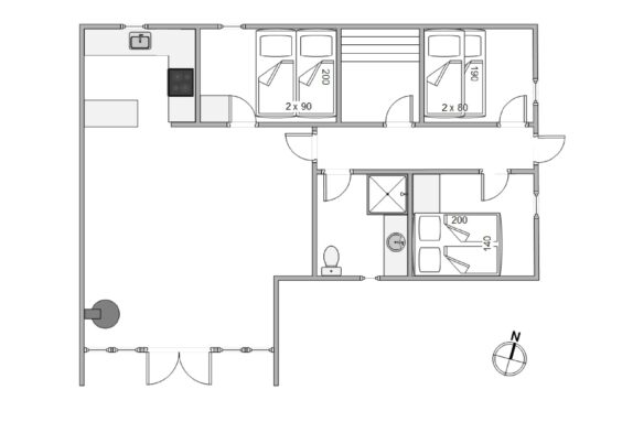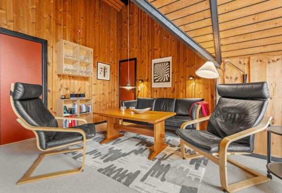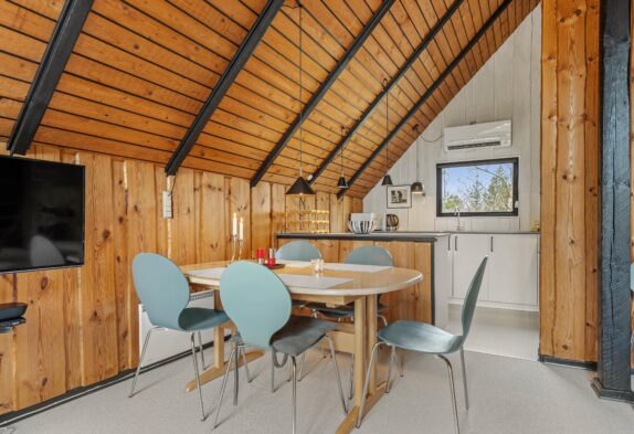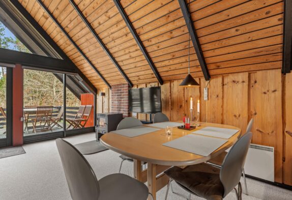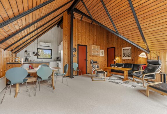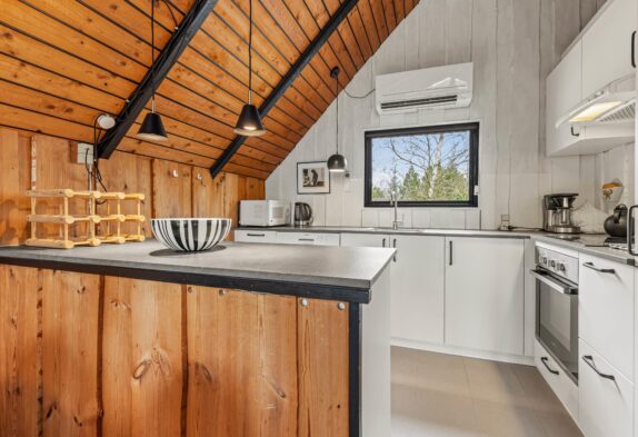 Dieses reetgedeckte Winkelhaus bietet einen guten Rahmen für schöne Familienferien in Houstrup. Wie ein roter Faden zieht sich die Farbe des Hauses auch durch die gemütliche Inneneinrichtung. Die holzverkleideten Decken und Wände unterstreichen den typisch dänischen Flair. Die offene Küche von 2021 ist mit allem ausgestattet, was man zum Zubereiten leckerer Mahlzeiten benötigt, auch auf die Spülmaschine braucht ihr nicht zu verzichten. Vom Wohnraum aus habt ihr Aussicht auf das Naturgrundstück.