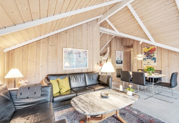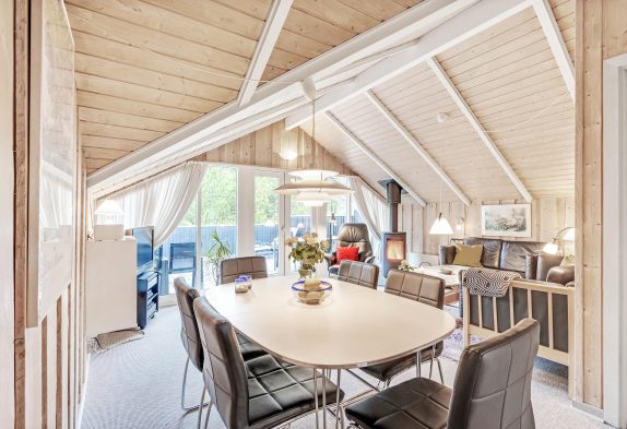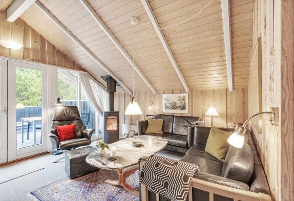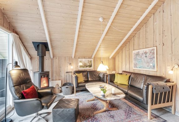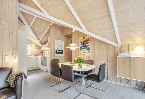 Verteilt auf 3 Schlafzimmer bietet dieses gemütlich eingerichtete Ferienhaus Platz für bis zu 5 Personen, und auch bis zu 2 Hunde sind im Ferienhaus willkommen. Für die typische dänische Ferienhausatmosphäre sorgen die hellen Holzwände und der Kaminofen, wo ihr den Abend vor dem knistrenden Kaminofen ausklingen, der an kühleren Tagen wohliige Wärme im Ferienhaus verbreitet. Die einladenden Möbel garantieren Erholung und Entspannung. Die neuere offene Küche, liegt in offener Verbindung zum Wohnzimmer und ist mit allem ausgestattet, was ihr zum Zubereiten leckerer Mahlzeiten benötigt und die Spülmaschine erledigt schnell und bequem den Abwasch.