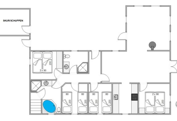 Mit Platz für bis zu 8 Personen und 2 Badezimmern gibt es morgens und abends nie eine Schlange vorm Bad. Im großen Badezimmer gibt es eine Sauna und einen Whirlpool, damit könnt ihr es euch richtig gut gehen lassen.