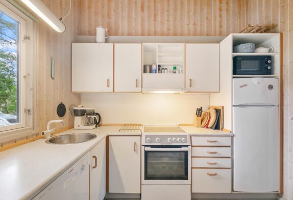 Die Küche lässt keine Urlaubswünsche offen. Neben dem Gefrierschrank findet ihr hier eine gute Kochmöglichkeit, Kaffeemaschine, Mikrowelle und eine Spülmaschine. Das Ferienhaus verfügt außerdem noch über eine Waschmaschine.