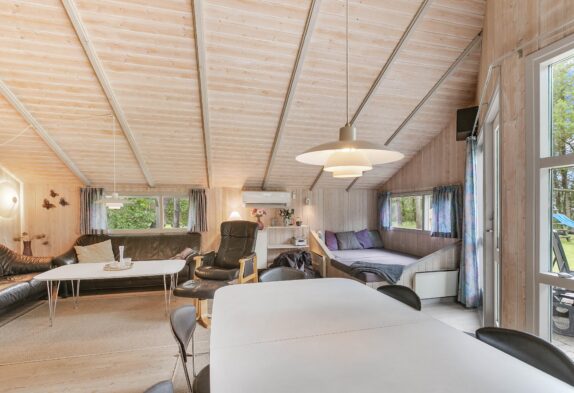 Durch die großen Fenster und die hell eingerichteten Räume wirkt das Ferienhaus freundlich und einladend. Die große Sauna die sich im Haus befindet, bietet den Perfekten Ort um nach einem langen Ferientag zu entspannen und die Betterien wieder aufzuladen.