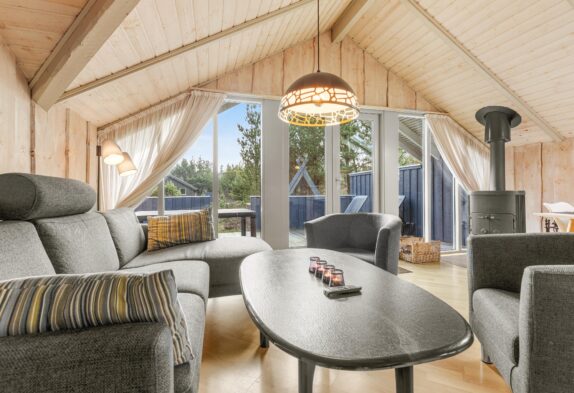 Im Skovvang 96 findet ihr dieses schöne und urige Holzferienhaus. Insgesamt gibt es hier 4 Schlafzimmer, 2 Doppelbettzimmer und 2 Einzelbettzimmer. Alles in allem hat das Ferienhaus Platz für 6 Personen und 2 Hunde. Durch die Zimmeraufteilung ist dieses Ferienhaus perfekt geeignet für Familien, Bekannte aber auch für Paare die einfach ein paar Tage ungestörte Zweisamkeit suchen. Jetzt müsst ihr euch nur noch entscheiden, ob ihr die große Terrasse oder den offenen Wohnbereich als neuen Lieblingsort wählt.