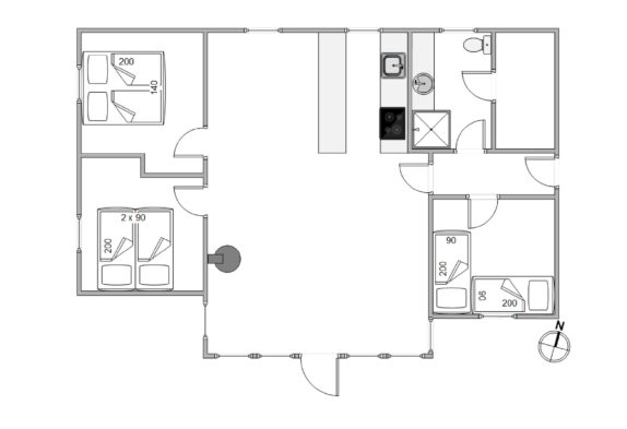 Das Ferienhaus verfügt über 3 Schlafzimmer, die Rückzugsorte für die Nächte bieten. 2 Schlafzimmer sind mit Doppelbetten ausgestattet,und ein weiteres Schlafzimmer bietet 2 Einzelbetten, ideal für Kinder oder zusätzliche Gäste. Das Badezimmer des Ferienhauses ist funktional gestaltet, und verfügt über eine Dusche und Zugang zur Sauna. Hier könnt ihr die Seele baumeln lassen