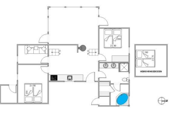 Das Ferienhaus im Søndervang 117 verfügt über insgesamt 3 Schlafzimmer, wovon 2 mit jeweils einem Doppelbett ausgestattet sind. Darüber hinaus steht im dritten Schlafraum ein Schlafsofa für euch bereit und auf dem Hems gibt es ebenfalls 2 weitere Schlafmöglichkeiten. Auch das Badezimmer bietet euch zahlreiche Annehmlichkeiten. Ausgestattet mit einer Sauna und einem Whirlpool, findet ihr hier eine Möglichkeit, nach einem langen Tag abzuschalten, die Wärme zu genießen und zu entspannen. Die Fußbodenheizung sorgt dabei jederzeit für warme Füße.