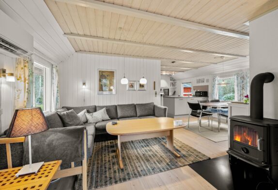 An den offenen Wohn-/Essraum schließt sich die voll ausgestattete Küche an, in der ihr euch nach Selbstversorgerart verpflegen und euch mit mundenden Leckerein verwöhnen könnt. Ein Kaminofen in Sofanähe sorgt für den Kuschelfaktor, dem ihr natürlich auch in den drei Schlafzimmern (Doppelbett, Einzelbetten, Etagenbett) nachgehen könnt.