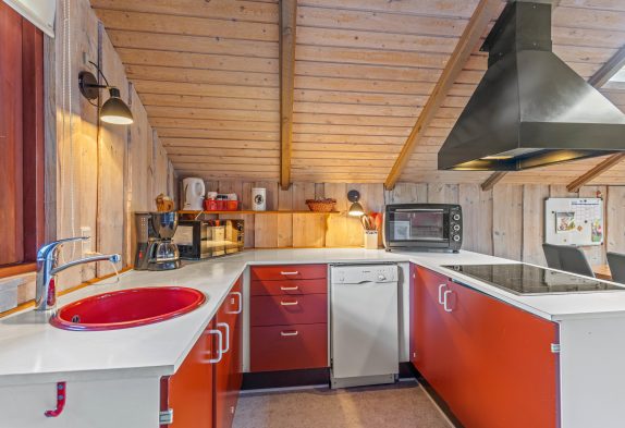 Der Kaminofen trägt einen wesentlichen Beitrag zur Atmosphäre bei – träumt vor dem knisternden Feuer mit einer Tasse warmem Tee, Kakao oder Kaffee in der Hand, das ist einfach herrlich! Sowohl im Wohnzimmer als auch im Badezimmer gibt es Oberlichtfenstern, die die Räume tagsüber mit natürlichem Licht füllen. Von diesem Gemeinschaftsraum aus gelangt ihr zu den 3 Schlafräumen (2 Doppelbetten, 1 Etagenbett).
