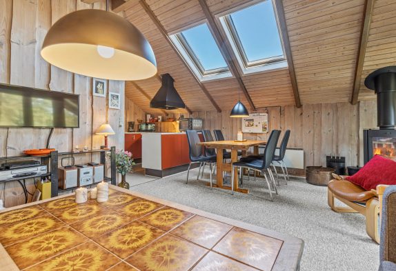 Im Skovvang 119 wartet dieses gemütliche und mit vielen Details ausgestattete Ferienhaus in Houstrup, das euch mit dem Kaminofen einen hohen Kuschelfaktor beschert und auch eine Waschmaschine zur Verfügung stellt.
