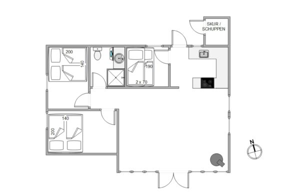 Im Skovvang 119 wohnt ihr ruhig und genießt zugleich eine attraktive Anbindung an die örtliche Infrastruktur: Lediglich 700 m trennen euch vom nächsten Kaufmann und 5 km vom hiesigen Strand. Im Ferienhausgebiet gibt es mehrere Waldspielplätze zum erkunden und ausprobieren.