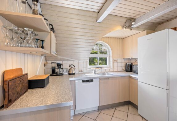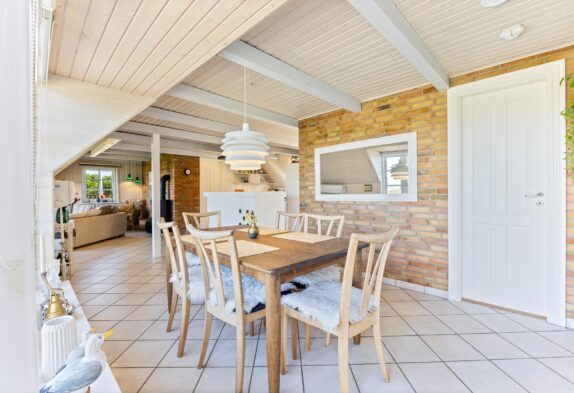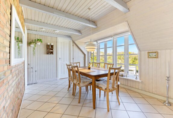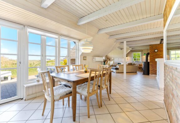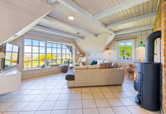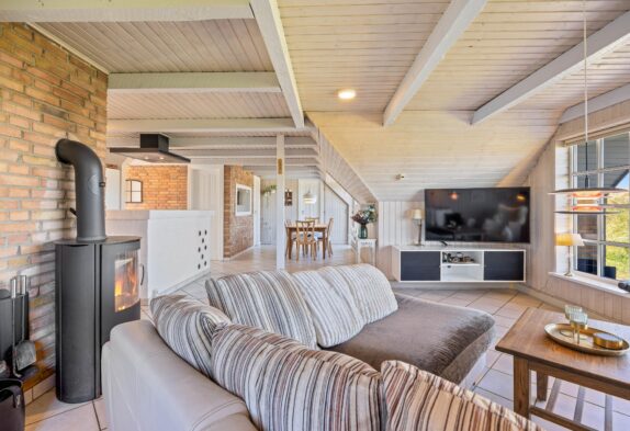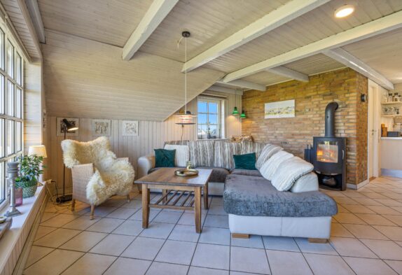 Die sichtbaren Holzbalken verleihen dem Ferienhaus einen ganz besonderen Charme. Die Einrichtung ist sehr gemütlich und lädt zum Entspannen ein. Sowohl die Sauna als auch der Holzofen schaffen dank der angenehmen Wärme entspannte Momente und unterstreichen die Urlaubsstimmung. Eine moderne Wärmepumpe sorgt für die gewünschten Temperaturen, solltet ihr euch gegen ein Feuer im Kamin entscheiden. Dank der recht niedrigen Deckenhöhe, kann dieses Ferienhaus in Søndervig schnell und effizient beheizt werden.