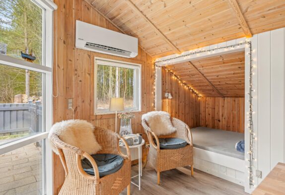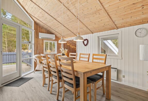 Dieses schöne Holzhaus findet ihr am Ende vom Vestervang, hier könnt ihr also einen ruhigen und erholsamen Urlaub mit der Familie verbringen. Da das Ferienhaus zwischen Kiefern versteckt liegt, habt ihr genügend Privatsphäre und seid vor neugierigen Blicken geschützt. Im Ferienhaus haben bis zu 6 Personen Platz und auch die Ausstattung lässt keine Wünsche offen.