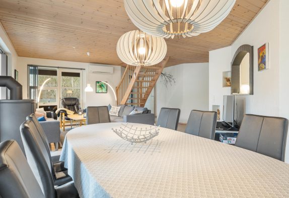 Im Vestervang 17 findet Ihr dieses schöne Wellness-Haus, das Familien und Freunden auf zwei Etagen mit optimaler Aufteilung, zwei Bädern und 4 Schlafräumen sowie zwei Wohnzimmern beste Bedingungen für einen Urlaub weit ab vom hektischen Alltag bietet. Unschlagbar sind der Blick auf den See vom Balkon aus wie auch das Wellnessabteil im grossen Badezimmer mit Sauna und grossem Whirlpool. Mit diesem Haus, Schaukel, Terrasse und Wiesengrundstück wird der nächste Urlaub der Hit des Jahres.