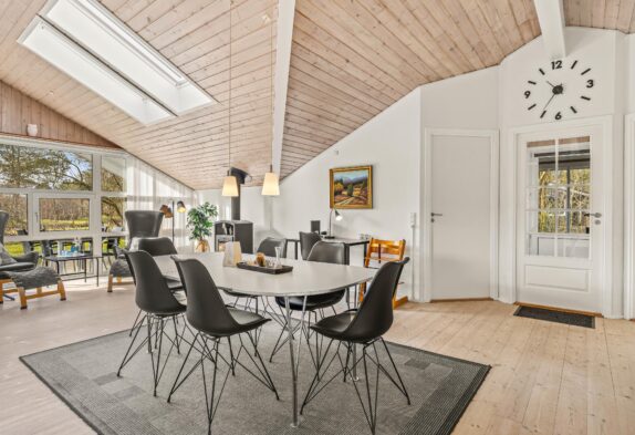 Für 6 Personen ist in diesem schönen Ferienhaus Platz und auch bis zu zwei Vierbeiner können mitgebracht werden. Nicht nur durch die große Fensterfront im Wohnraum sondern auch durch die Dachfenster wirkt der Raum noch heller und freundlicher.