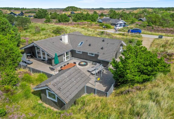 Auf einem wunderschönen hügeligen Dünengrundstück im Tranebærvej 24, steht dieses grosse familienfreundliche Sommerhaus mit grosser geschlossener Terrasse. Es liegt mitten in den Dünen, nur wenige Gehminuten von der brausenden Nordsee und vom lebhaften Ferienort Henne Strand entfernt.