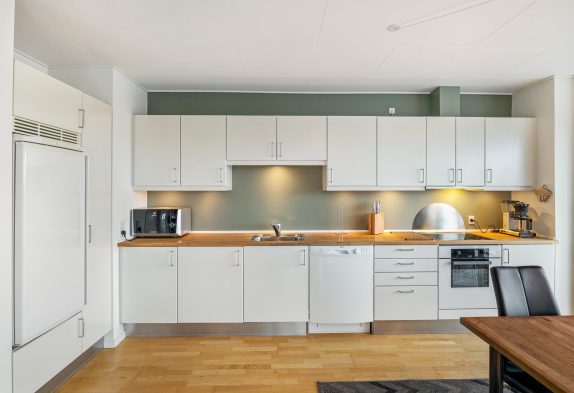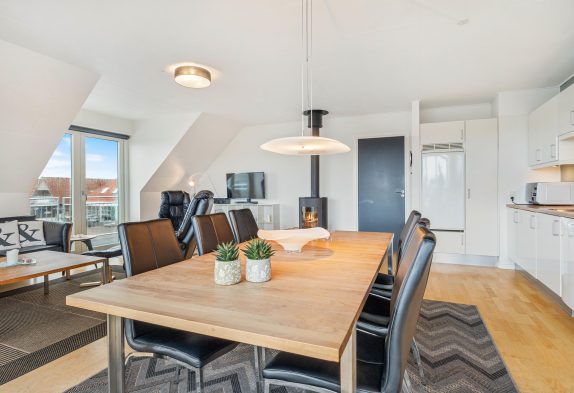 Herzstück der Wohnung ist der grosse Wohnraum mit der modernen offenen Küche. Dieser herrliche Raum lädt die ganze Familie zum Verweilen ein. Der Wohnraum ist mit Liebe zum Detail eingerichtet und versprüht den typischen Charme dänischer Gemütlichkeit. Für Unterhaltung sorgt ein grosser Flachbildschirmfernseher und W-Lan. Selbstverständlich stehen alle modernen Bequemlichkeiten, wie Spülmaschine, Waschmaschine und Trockner zur Verfügung.