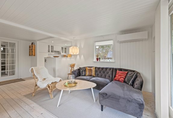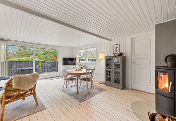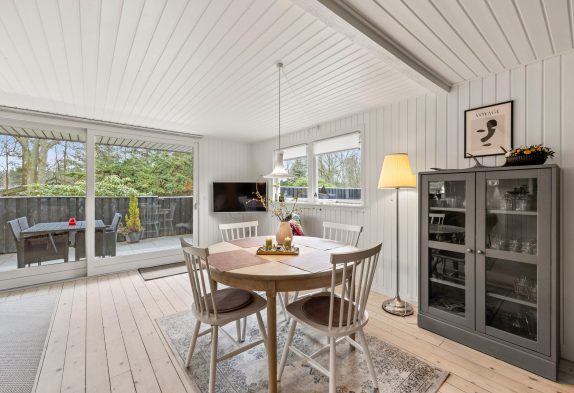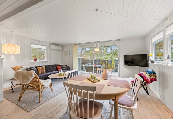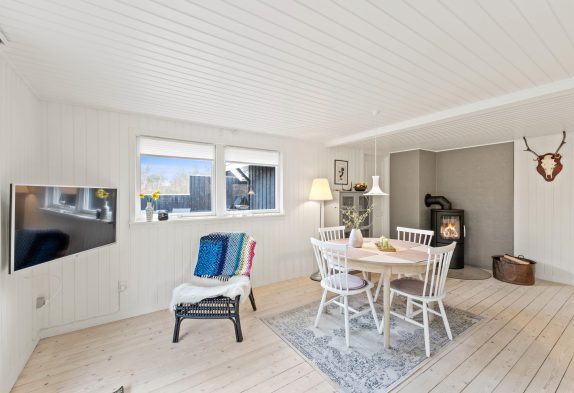 Dieses gemütliche Holzhaus in Henneby bietet Platz für 4 Personen. Es verfügt über zwei Schlafzimmer, eins mit Doppelbett, das andere mit zwei Einzelbetten. Kurzum, es ist ideal für eine kleine Familie aber auch für den Urlaub zu zweit. Die Einrichtung hat den typischen Charme dänischer Sommerhäuser. Die helle halboffene Küche ist mit allem ausgestattet, was Ihr zum Zubereiten leckerer Mahlzeiten benötigt.