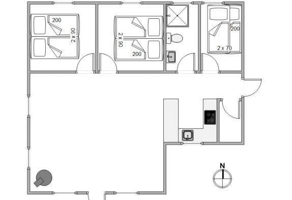 Dieses einfache, aber gemütliche Ferienhaus bietet Platz für bis zu 6 Personen. Es gibt drei Schlafzimmer, von denen 2 mit Doppelbetten und 1 mit einem Etagenbett ausgestattet sind.