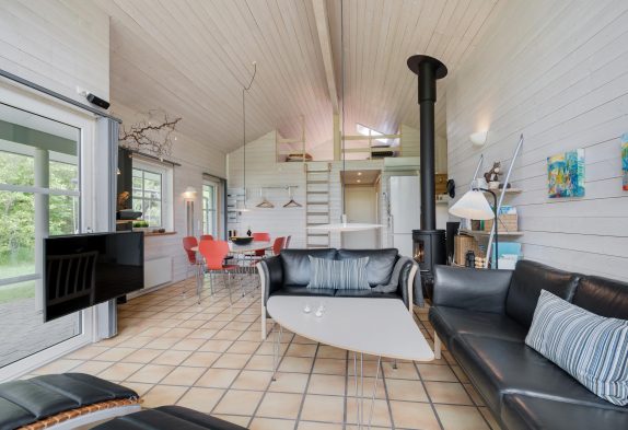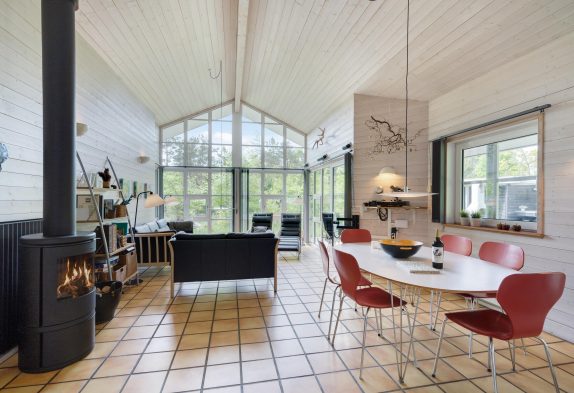 Mittelpunkt des Hauses ist zweifellos der große lichtdurchflutete Wohnraum mit der offenen Küche und den großen Panoramafenstern, der Platz für alle Bewohner des Hauses bietet. Die gemütliche Einrichtung mit hochwertigen modernen Sitzmöbeln lädt zu vielen gemütlichen Stunden ein. Das Haus ist mit allen erdenklichen Bequemlichkeiten wie Spülmaschine, Waschmaschine und Trockner ausgestattet. Für Unterhaltung sorgen der große Flachbildfernseher, ein DVD Player, DAB Internetradio mit Spotify Connect und das kostenlose frei verfügbare W-Lan mit einer 50/50 mBit Verbindung. An kühleren Tagen verbreitet der knisternde Kaminofen wohlige und umweltfreundliche Wärme.